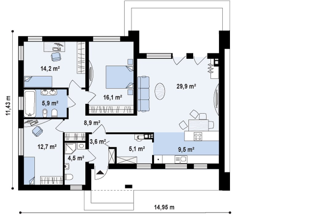 | Ширина: | 14,95 м2 |