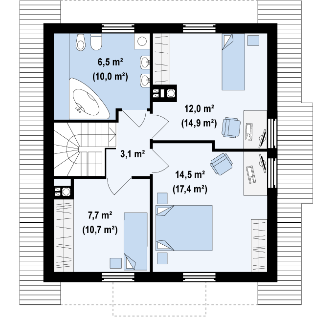 | Возможный материал кровли: | металлочерепица, гибкая черепица, керамическая черепица, композитная черепица, цементно-песчаная черепица |
