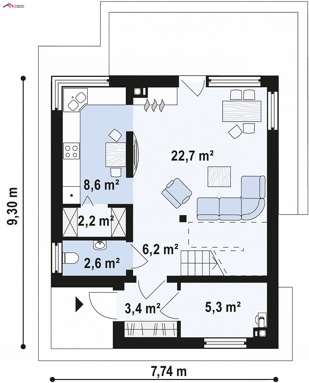 | Ширина: | 7,7 м2 |