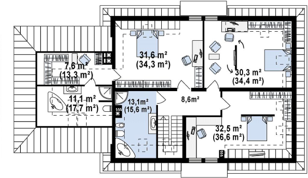 | Возможный материал кровли: | металлочерепица, гибкая черепица, керамическая черепица, композитная черепица, цементно-песчаная черепица |