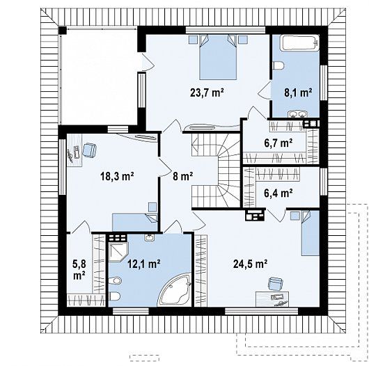 | Возможный материал кровли: | металлочерепица, гибкая черепица, керамическая черепица, композитная черепица, цементно-песчаная черепица |