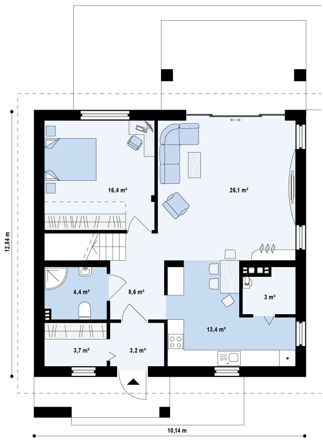 | Возможный материал стен: | газобетон | пеноблок, кирпич, керамические блоки |