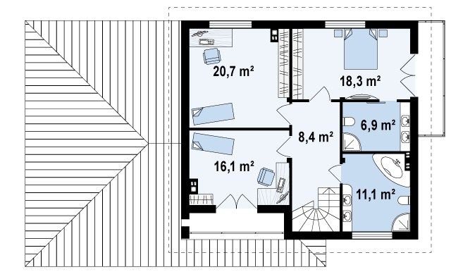 | Возможный материал кровли: | металлочерепица, гибкая черепица, керамическая черепица, композитная черепица, цементно-песчаная черепица |