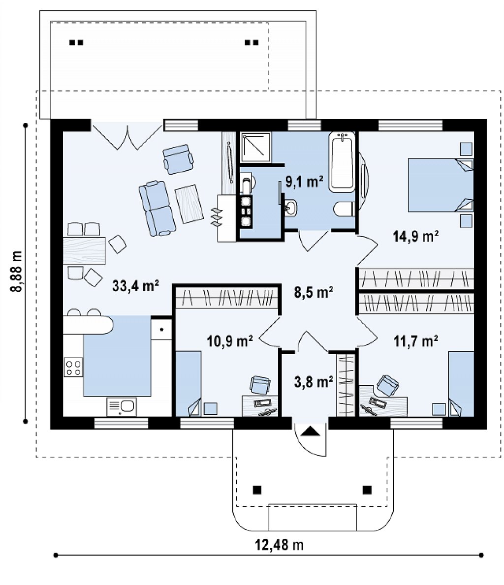 | Возможный материал стен: | газобетон | пеноблок, кирпич, керамические блоки, керамзитовые блоки, оцилиндрованное бревно |