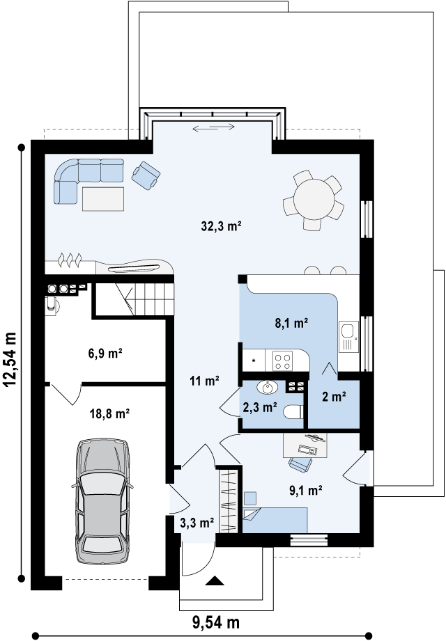 | Ширина: | 9,54 м2 |